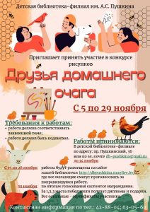 1. Работы принимаются до 14 ноября 2021 года включительно на почту db-pushkina@mail.ru;не забудьте указать имя, фамилию и возраст участника.