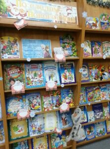 На зимних каникулах детский абонемент предлагает ребятам 1-4 классов принять участие в интерактивной выставке «По следам Нового года», где Эльза, героиня популярного мультфильма, приглашает окунуться в мир волшебства, чудес и приключений и познакомиться с книгами, которые подарят новогоднее настроение.