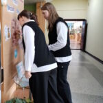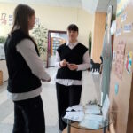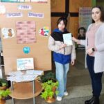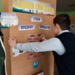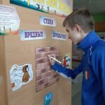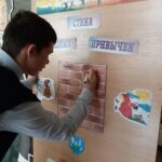 Молодые люди, пришедшие в библиотеку, записывали вредные привычки на кирпичиках, расположенных между моделями здорового и нездорового человека.