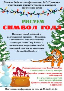 С 8 по 15 декабря у вас есть время, что бы нарисовать рисунок с символом наступающего года и отправить его на электронную почту db-pushkina@mail.ru