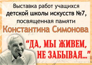 Его имя вписано в страницы истории нашего города и память о нем хранят ныне живущие поколения. «Да, мы живем, не забывая…», так называется витражная выставка картин учащихся ДШИ №7 г. Могилева, организованная в библиотеке и посвященная памяти великого писателя-фронтовика Константина Симонова и тем трагическим дням в июле 1941 года.