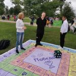1 сентября библиотека приняла участие в городском празднике «Дети за счастливое будущее» в рамках празднования Дня знаний в парке «Подниколье». Большой популярностью у детей всех возрастов, их родителей и учителей пользовались интерактивные площадки: информационный блок «До звонка 5 минут», интерактивная доска «Задачки из портфеля», интеллектуальная площадка «Я в этом городе живу, я этот город знаю?», арт-площадка «Я рисую Могилев» и игровая площадка «НеРЕАЛЬНЫЙ Могилев».