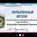 На платформе ВK-звонки между командами из Могилева, Челябинска и Ломоносова состоялась онлайн-игра «Окрыленный музой», посвященная жизни и творчеству Александра Сергеевича Пушкина – великого русского поэта, драматурга, прозаика и публициста.