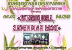 В канун весеннего праздника в библиотеке состоится концертная программа "Женщина, любимая моя" с участием народного хора народной песни Могилевского городского центра культуры и досуга под руководством Николая Воропая.