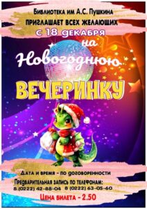 С 18 декабря детская библиотека им. А.С. Пушкина приглашает классы, группы школьников от 6 лет на вечеринку в честь нового 2024 года!