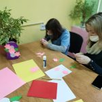 На мастер-классе «Великолепная восьмерка» участники изготовили из картона и цветной бумаги яркую праздничную открытку, которая стала прекрасным подарком для любимых мам!