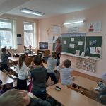 Этот день библиотека отмечала не только в своих стенах, но и выходила в детские коллективы. Так, прошел познавательный час «Животные в космосе» для учащихся 1 «В» класса СШ №43.