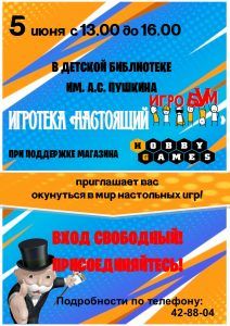 5 июня ждём всех на долгожданную игротеку!