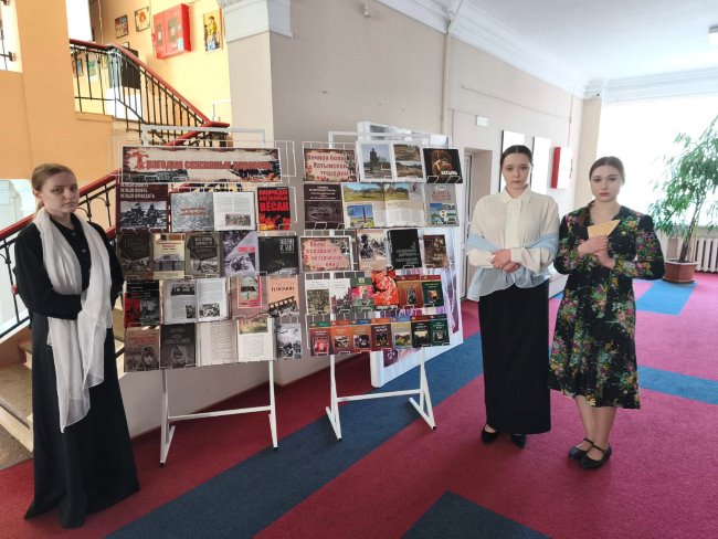 19 апреля, в рамках Единого урока Памяти, посвященного трагедии в деревне Хатынь, библиотека приняла участие в кинореквиеме «Хатынь: судьбы, соженные в огне». Перед просмотром фильма зрителям было предложено ознакомиться с литературой, представленной на выставке-просмотре «Трагедия сожженных деревень».