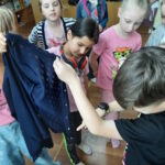 В игре «Перевертыши» собирали слова, в которых перемешались буквы, как стекляшки, обозначающие цвета; в игре «Твои цвета» под музыку искали определенный цвет у соседа; узнавали хорошие качества характера ребят в игре «Пуговкобанк»; проверили физические возможности школьников в игре «В ритме лимбо», а после игры «Ушастик» поняли, что обманывать и «вешать лапшу на уши» сложнее, чем говорить правду.