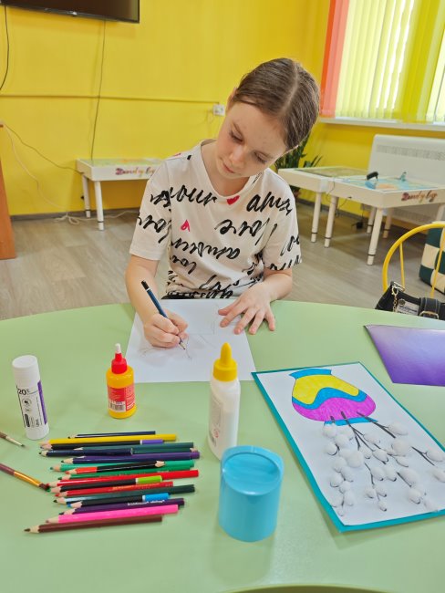 Вооружившись вдохновением и самыми необходимыми материалами — бумагой, цветными карандашами, фломастерами, клеем и ватой — ребята приступили к созданию своей весенней композиции.