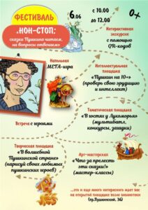 Детская библиотека-филиал им. А.С Пушкина приглашает детей и взрослых на фестиваль «НОН-СТОП: сказки Пушкина читаем, на вопросы отвечаем».