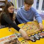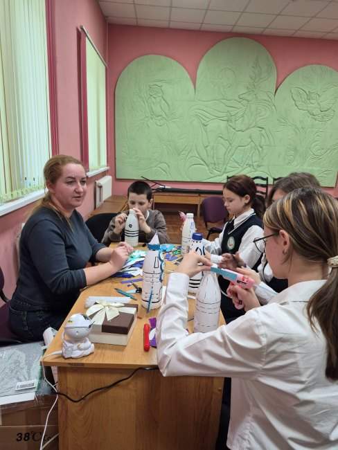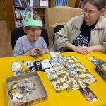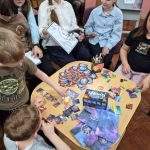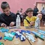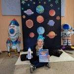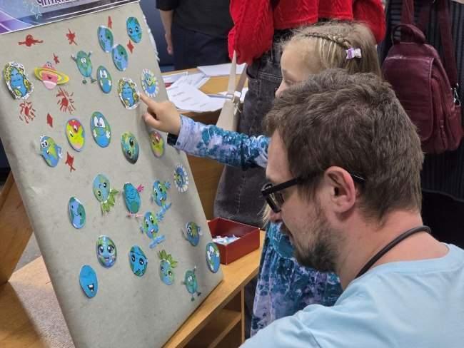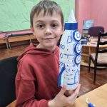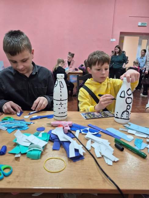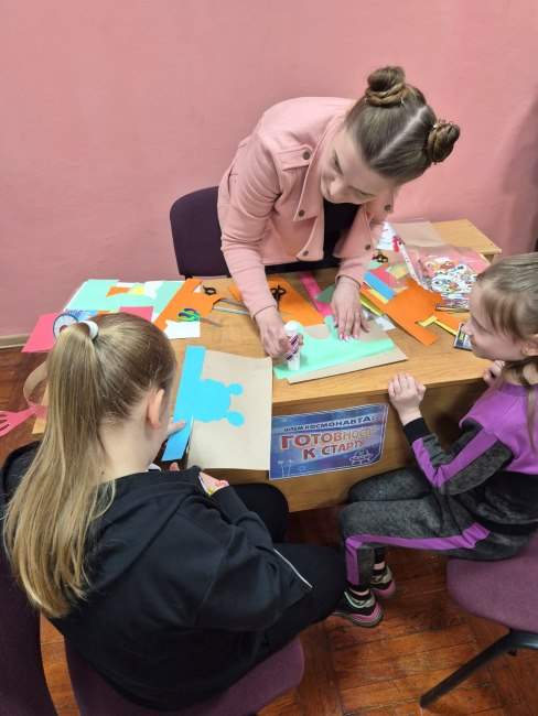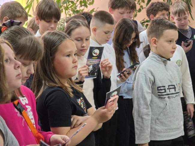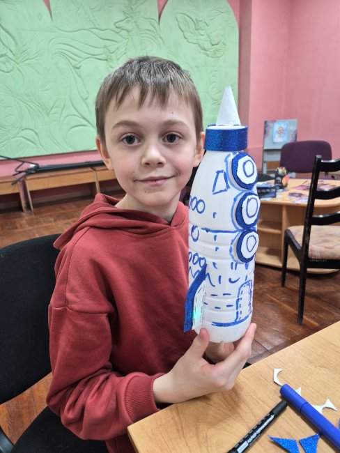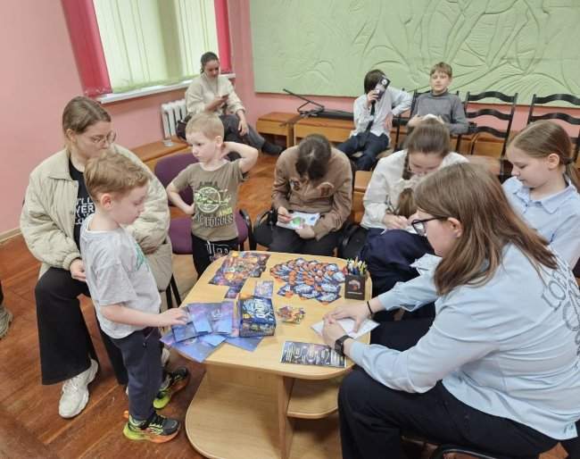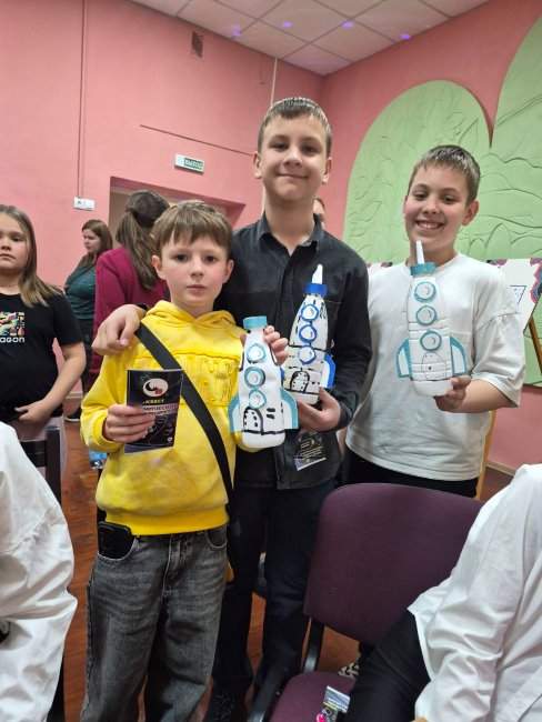 «Космическая академия»: самые юные гости начали свой путь с Академии. Под руководством библиотекарей они осваивали инженерные профессии будущего. В ход шли цветная бумага, фольга и пластиковые бутылки. Ребята мастерили экологичные ракеты, которые тут же отправлялись в «полет» прямо в фойе. Параллельно в мастерской кипела работа над созданием шлемов космонавтов из подручных материалов. Пока одни конструировали, другие собирали космические пазлы и решали головоломки на логику.