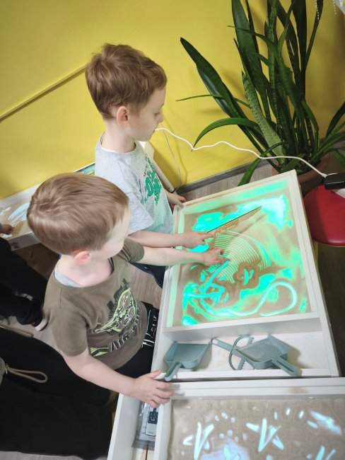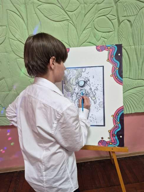 Астроарт «Пески Вселенной»: в художественной лаборатории царила особая атмосфера. Здесь реальность переплеталась с фантазией. С помощью песочной анимации гости рисовали Млечный Путь, черные дыры и причудливые ландшафты далеких планет. Каждый желающий мог почувствовать себя творцом мироздания, создавая неповторимые галактики прямо на световых столах.
