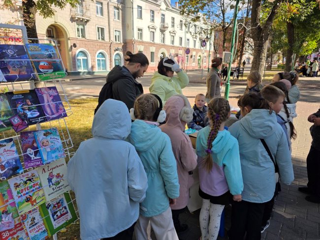 24 сентября, в Комсомольском сквере, в рамках открытия XVIII Международного фестиваля анимационных фильмов «Анимаёвка - 2025», библиотека представила могилевчанам интерактивную площадку «Смотри! Играй! Создавай!».