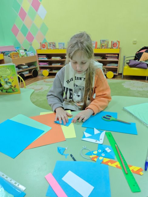 Для юных читателей был проведен мастер-класс по созданию весёлых книжных закладок в технике оригами.